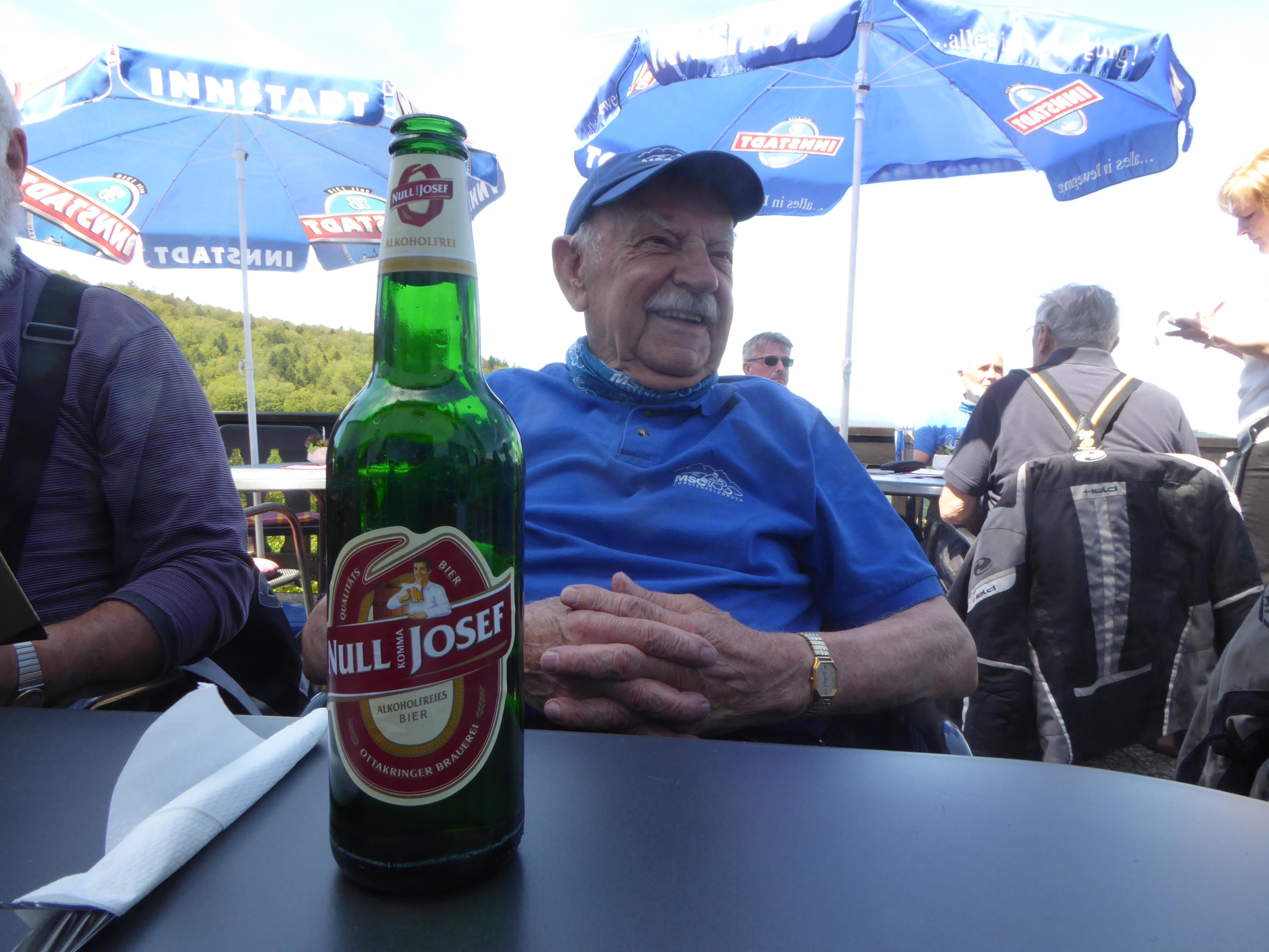 Um schneller an das Ziel zu kommen, wurden die ersten 93 Km ab Oberschleißheim auf der Autobahn A92 bis zur Ausfahrt 15 Essenbach konzentriert und gut abgestimmt zurückgelegt. Unterbrochen durch Kaffeepause in Wörth a.d. Isar, großräumig an Straubing und Deggendorf (Wallfahrtskirche Maria von der Rose+Kneipanlage) vorbei, konnte sich jeder über Landstraßen auf die zu erwartenden abwechslungsreichen Kurven auf den Höhen des Bayerischen Waldes einfahren. Die schönen Aussichten wurden erst bei der Mittagspause am ca. 1000 m ü.M. hohen Brotjackelriegel in Ruhe genossen, da bis dahin Kurven und stetiger Wechsel zwischen Sonne und Schatten die ganze Aufmerksamkeit der Biker in Anspruch nahmen. Aufgrund eines technischen Defekts an einem Motorrad und der bevorstehenden Rückfahrt von 210 Km, haben wir auf den Gang zum Aussichtsturm verzichtet.